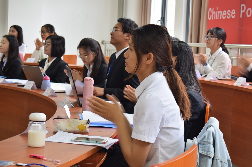 2018年6月10日,8858cc永利2016级行政管理班在青岛校区振声苑W206举行模拟国际学术会议活动,会议以“中国人口与发展(Chinese Population and Development)”为主题,分为三个分议题进行讨论。孙宗峰、俞少宾两位老师参加论坛并担任评委,2016级行政管理班同学全员参与。
