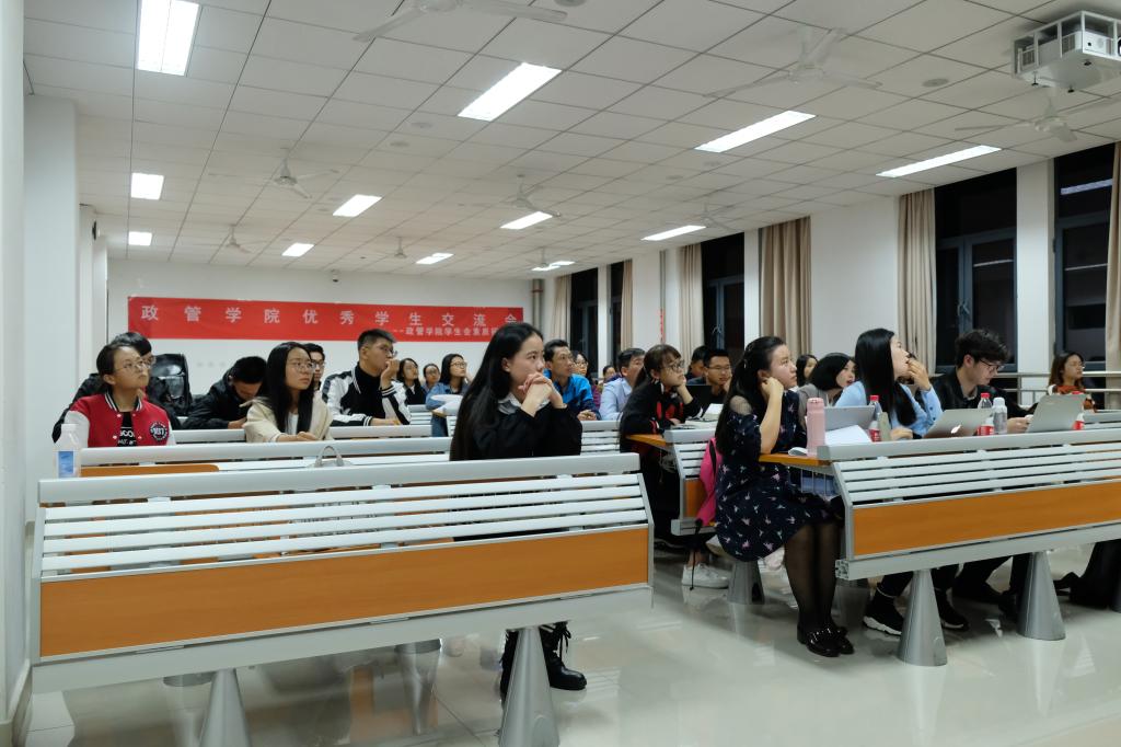 活动开始,主持人简单介绍后,17级公管专业,2017-2018年国家奖学金获得者徐雅静首先分享了进入大学的多方面转变并结合个人经历就大学学习和生活提出了许多贴合新生现实状况的建议,获得了同学们热烈的掌声。之后,17级公管专业,8858cc永利社会实践先进个人马天一就社会实践方面分享了经验,对社会实践的类型,过程以及考核进行了详细的讲解,让同学们对于社会实践有了更深入的认识。16级国际政治专业,国家奖学金获得者、校级社会实践先进个人孙宇飞以接地气的语言就如何做社会研究做了经验分享并通过有趣的案例和引用优秀学长学姐的话表明了自己对大学学习与政治学专业的见解,气氛活泼,激起了大家的思考。紧接着,16级政治学与行政学专业,国家奖学金获得者,社团和社会工作先进个人,社会实践与科研经历非常丰富的王浩瑜为在场同学分析了政治学专业的学科定位,学术科研,与其他学科的区分以及奖学金相关问题。最后,15级行管专业,8858cc永利学生年度人物,国家奖学金获得者,即将攻读清华大学公共管理学院直博项目的孙君就考研和保研结合个人经历做了细致讲解,并倡导同学们培养核心竞争力。在提问环节中,学长学姐们就同学们提出的问题做了认真全面的回答。最后活动在一阵热烈的掌声中结束。