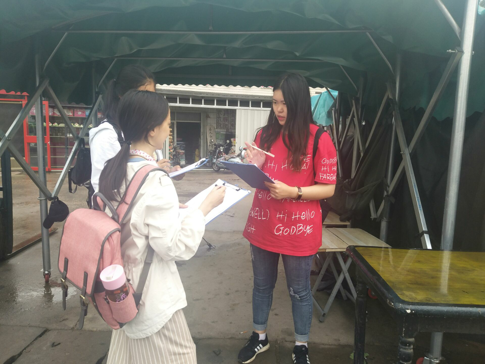 短暂休息后团队成员在街道向消费者发放问卷,了解王哥庄大馒头的购买情况。馒头店前人来人往,有不少青岛市民因为王哥庄大馒头的知名度和正宗的味道特意从市里前来购买,还有很多游客路经此地时特意下车购买。在团队成员的努力下,最终有一百余份问卷被完成。