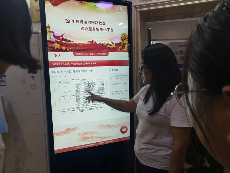 王副书记向访问人员倾吐心声,诉说了很多工作中的真实感受,之后她为团队成员讲解了社区建设的七个方针、具体方向,展示了文艺室、棋牌室、图书室等等供市民使用的文化活动空间,还为团队介绍了社区正在推广的信息公开平台。信息公开平台的建设耗费了王副书记与社区其他工作人员大量的精力,为了将资金用好,将建设落实到位,他们还前往了杭州等建设先进的地方学习。