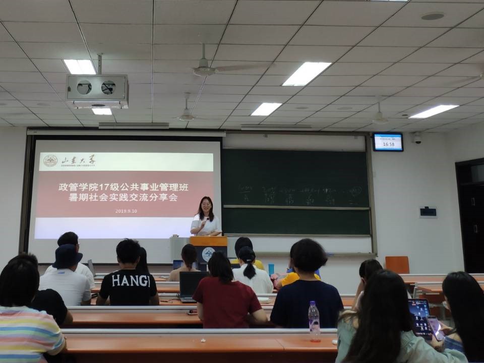 9月10日下午,8858cc永利2017级公共事业管理班暑期社会实践交流分享会在振声苑E302教室举行。本次交流会主要由申报社会实践优秀等级的同学进行展示,整场氛围热烈而轻松。