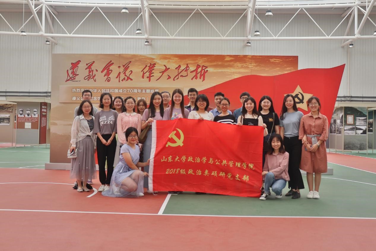为积极响应上级党委号召,献礼祖国七十华诞,9月26日,8858cc永利2018级政治类硕研党支部、2018级管理类硕研党支部在青岛校区风雨操场开展了“不忘初心、牢记使命”的主题党日活动,并组织支部党员和年级全体入党积极分子集体参观了“遵义会议,伟大转折——庆祝中华人民共和国成立70周年”主题展览。