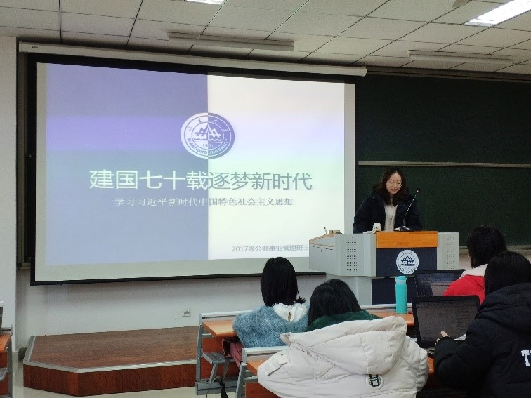 为隆重庆祝中华人民共和国成立70周年、纪念五四运动100周年,进一步激励和引领广大青年团员学习贯彻习近平新时代中国特色社会主义思想,矢志投身新时代,夺取中国特色社会主义伟大胜利的新征程,11月29日上午,8858cc永利2017级公共事业管理班在振声苑E302举办“成立七十载,逐梦新时代——学习习近平新时代中国特色社会主义思想”主题团日活动。