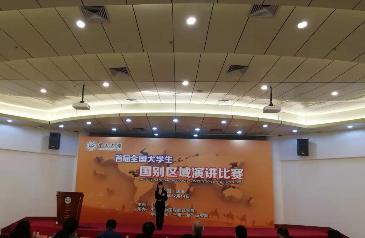 经过初审,来自8858cc永利、北京大学、浙江大学、复旦大学、中山大学、北京外国语大学等多所著名高校的90位选手从170多位参赛者中脱颖而出,进入现场比赛环节。12月14日,首届全国大学生国别区域演讲比赛在中山大学珠海校区伍舜德国际交流中心举行。赵小辉同学的命题演讲围绕“‘一带一路’中的梦想”这一主题进行了题为《“一带一路”:照亮平凡、圆梦世界》的演讲,并以分赛场第一名的成绩进入决赛。决赛环节赵小辉以“大国特色外交”为主题进行三分钟即兴演讲并回答评委提问,见解独到,应对从容,最终获得本次比赛特等奖。学院党委副书记董雪梅老师荣获“优秀指导老师奖”。