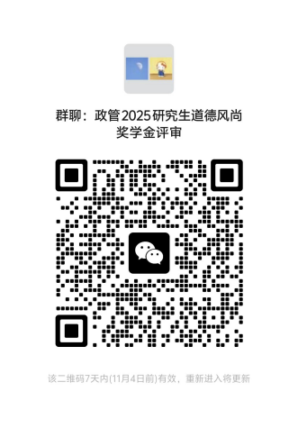 2.单位推荐。学院党委对申请人评议并征求导师意见,组织答辩(时间地点另行通知)综合评定1名道德风尚奖学金候选人,公示无异议后将相关材料报送学校。学院公示不再另行通知,请申报同学关注学院网站。拟推荐候选人请在学院公示日至11月3日(周一)下午17点前加入微信群(群码附后),群内发布后续答辩等评选事宜。