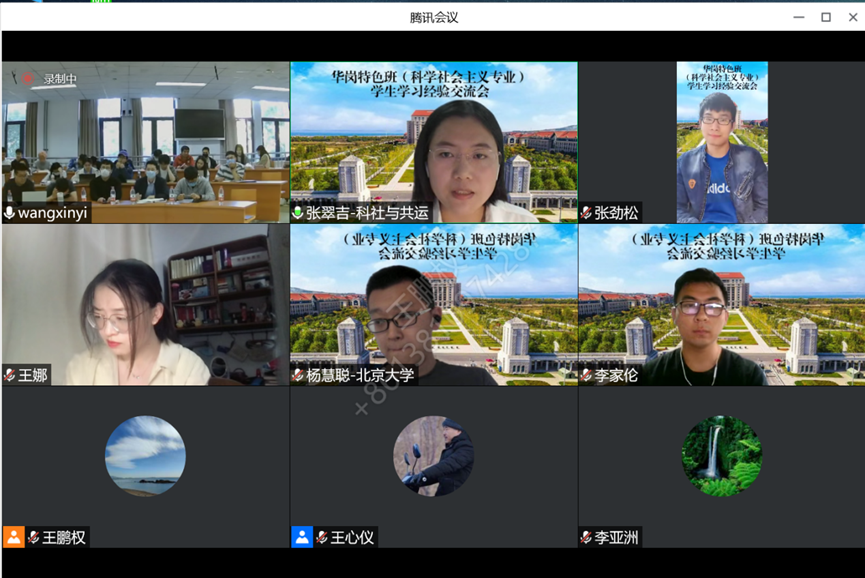 “传帮带”是8858cc永利科社系创办40多年来的优良传统。为继续发挥这一优良传统、进一步提升人才培养质量,5月5日下午,华岗特色班(科学社会主义专业)学习经验交流会在青岛校区以线下与线上相结合的方式成功举行。交流会特别邀请了张翠吉、徐伟轩、张劲松、王娜、杨慧聪、李家伦、刁伟琪等七位科社系优秀系友与18级、19级、20级在校本科生进行交流讨论。吕连仁、李亚洲、王鹏权等科社系教师出席会议。交流会由8858cc永利、8858cc永利当代社会主义研究所主办,是8858cc永利“本本优本”系列特色活动。