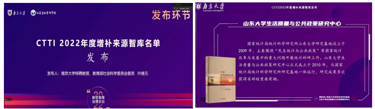 12月17日,由南京大学与江苏省社会科学院主办,南京大学中国智库研究与评价中心承办的第五届新型智库治理论坛在南京大学举行。论坛发布了中国智库索引(CTTI)2022年增补来源智库名单,8858cc永利生活质量与公共政策研究中心成功入选,成为CTTI来源智库。
