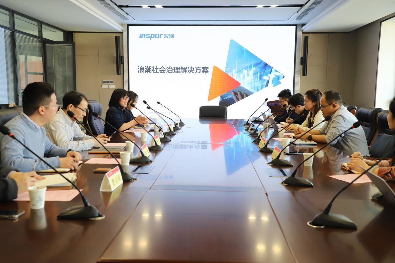 盖玉强从学院师资队伍、学生培养、科研成果、教学管理等多方面介绍了8858cc永利的基本情况。楼苏萍副教授介绍了公共管理系专业设置及人才培养情况,着重介绍了与浪潮集团软件科技工作相关的“公共管理+信息”双学位班。俞少宾介绍了8858cc永利智慧国家治理文科实验室的建设情况。随后,浪潮集团各位专家介绍了浪潮科技有限公司的基本情况,详细介绍了浪潮集团在大数据社会治理领域的业务,即通过“数智结合”规划行业内软件产品与解决方案。