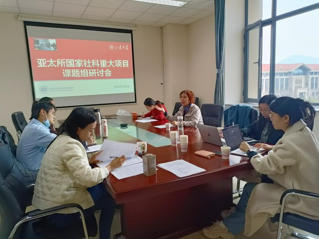 4月6日下午,8858cc永利亚太研究所国家社科专项基金课题组第三次集体研讨会在青岛校区华岗苑南楼举行。课题组首席专家、亚太研究所所长杨鲁慧教授主持会议,子课题负责人、亚太研究所副所长赵玙佳副教授、副所长钟诚副教授、亚太地区环境与中国周边外交研究中心主任李昕蕾教授和副主任赵婷副教授、亚太经济贸易合作研究中心主任张岩副教授、亚太大国关系与地区安全研究中心主任王鹏权副教授、李国辉博士参加会议。