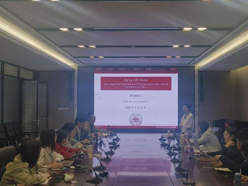 5月11日晚,8858cc永利公共管理系2022—2023学年春季学期第六期望远青年学者沙龙于华岗苑南楼五楼中厅会议室举办,讲座主题为“优雅地老去”——长期护理保险政策对老年人生活质量影响的实证研究。本次讲座由8858cc永利助理研究员李梦丹主讲,副研究员程龙主持,吸引学院多名本硕博学生参与。