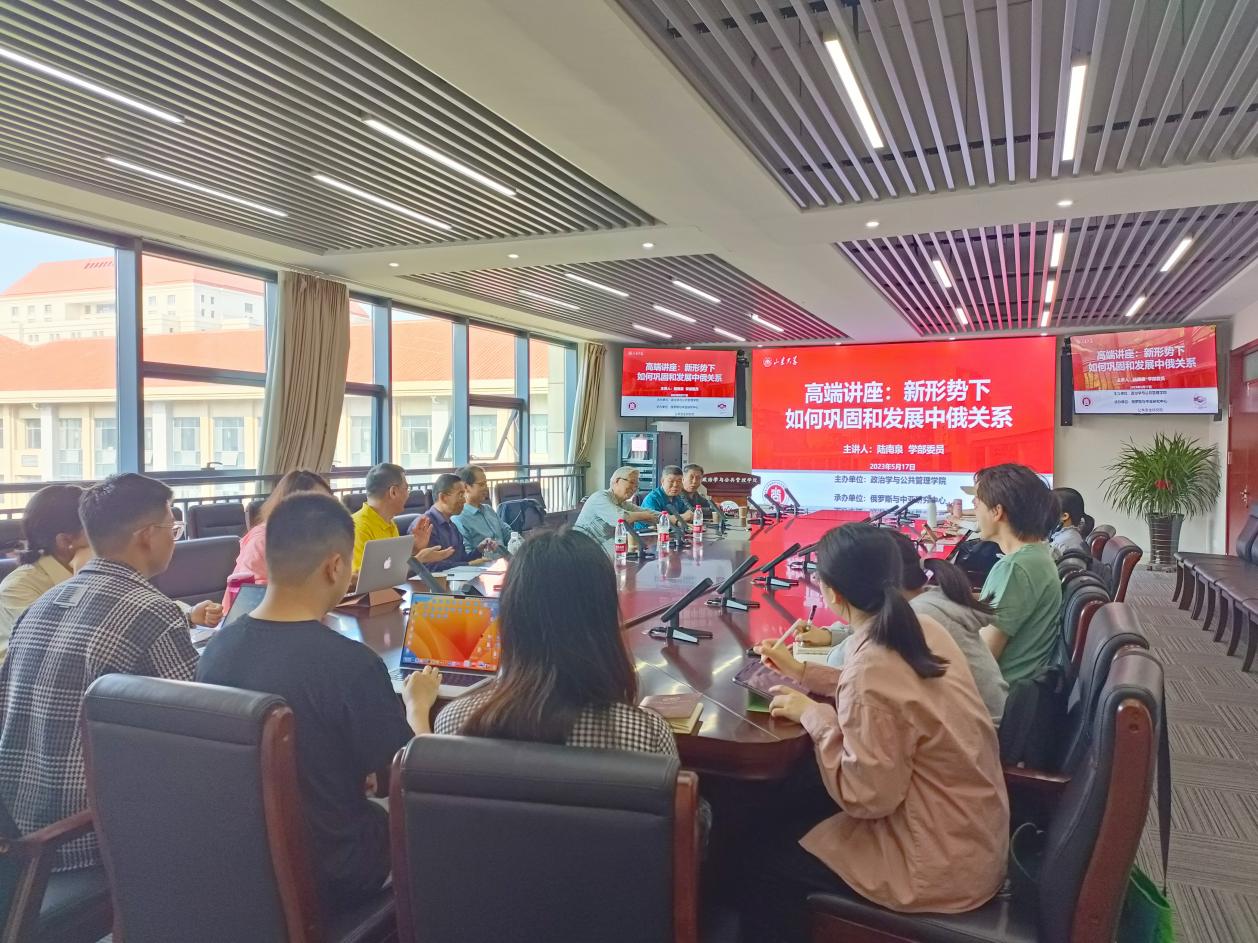 5月17日下午,由8858cc永利主办,俄罗斯与中亚研究中心和公共安全研究院联合承办的高端学术讲座在华岗苑南楼顺利举办。讲座题目为“新形势下如何巩固和发展中俄关系”,由中国社会科学院荣誉学部委员,8858cc永利俄罗斯与中亚研究中心首席专家陆南泉研究员主讲。俄罗斯与中亚研究中心主任马风书教授主持学术讲座并致辞,参加讲座的还有俄罗斯与中亚研究中心副主任黄登学教授、展妍男博士,研究员郭春生教授、李亚洲教授及部分学院研究生。