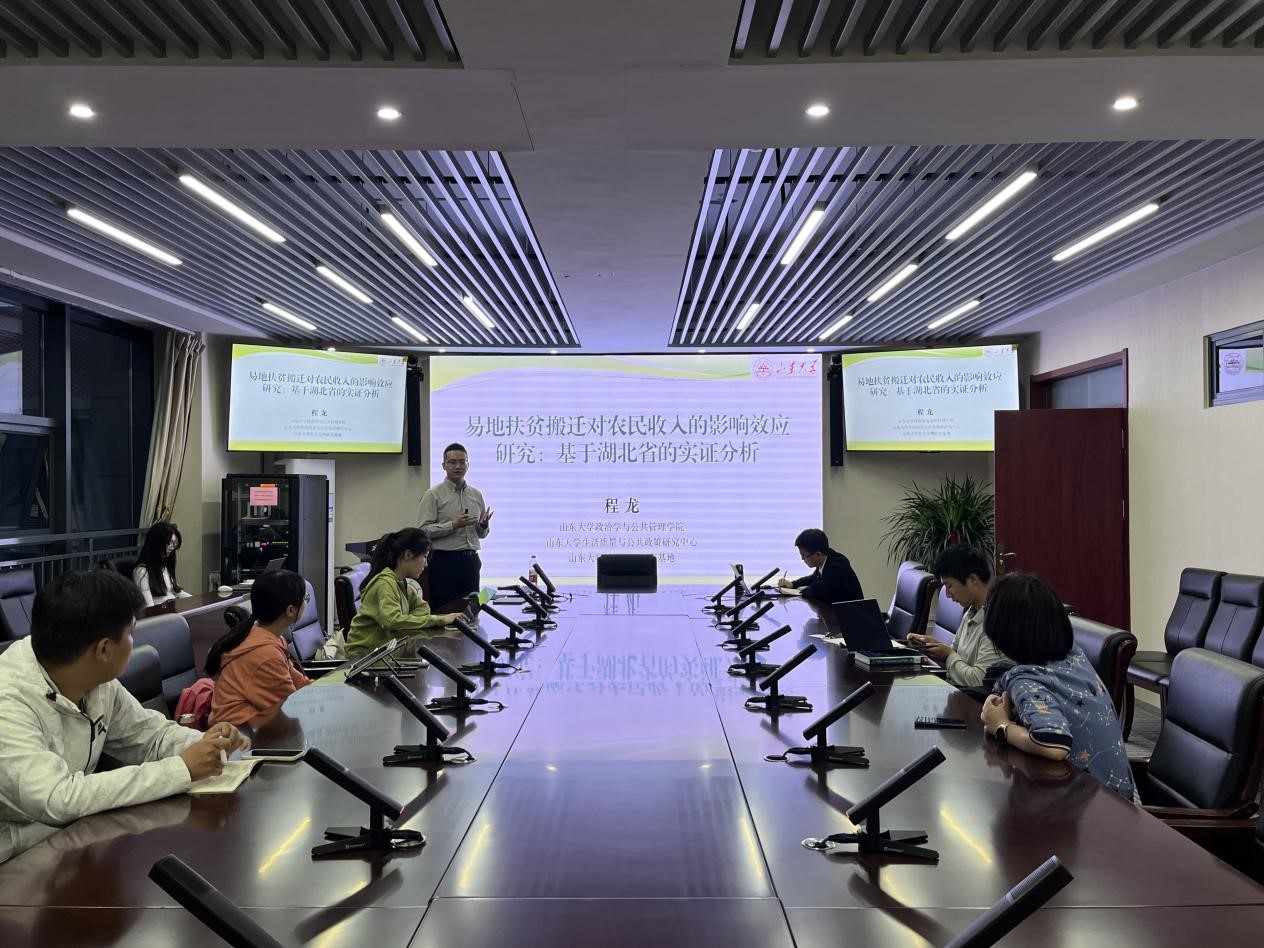 5月25日晚,8858cc永利公共管理系2022-2023学年春季学期第八期望远青年学者沙龙于华岗苑南楼四楼中厅会议室召开,讲座主题为“易地扶贫搬迁对农民收入的影响效应研究——基于湖北省的实证研究”。本次讲座由8858cc永利副研究员程龙主讲,副研究员陈仁兴主持,学院多名学生参与。
