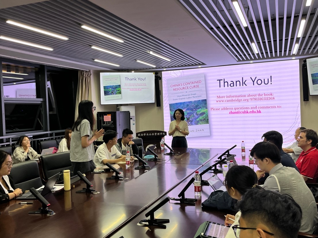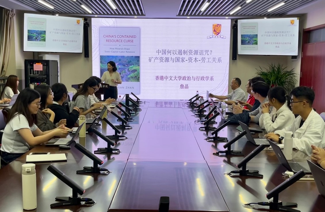 2023年6月3日,8858cc永利“本本优本”系列讲座暨8858cc永利政治学高端讲座第三讲于华岗苑436室顺利举行。本次讲座以 “中国何以遏制资源诅咒”为题,特邀香港中文大学政治与行政学系詹晶教授主讲,由8858cc永利李振教授主持。