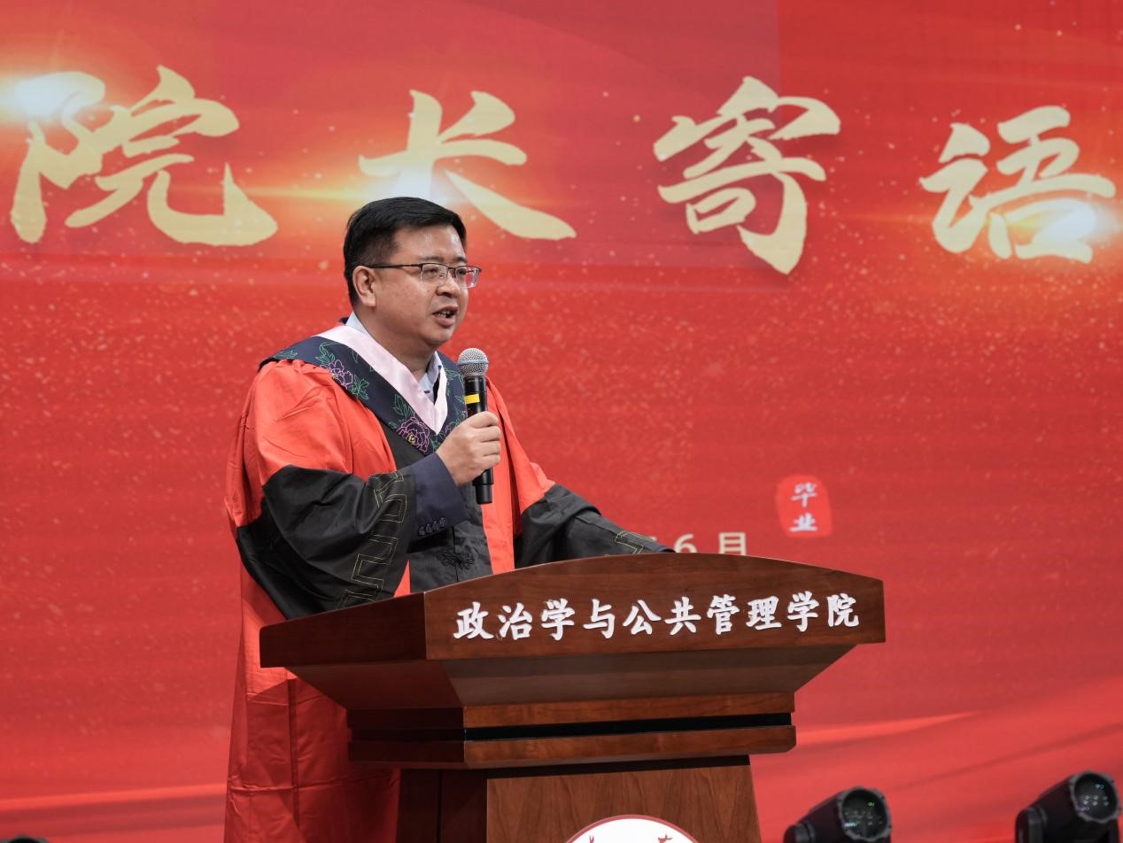 教师代表郭春生教授希望毕业学子在人生赛道上奋力前进,不负韶华、不负时代、不负国家和人民;做砥砺奋进、锐意创新的奋斗者,做脚踏实地、本领过硬的实干者、做胸怀家国、勇毅不惧的担当者。