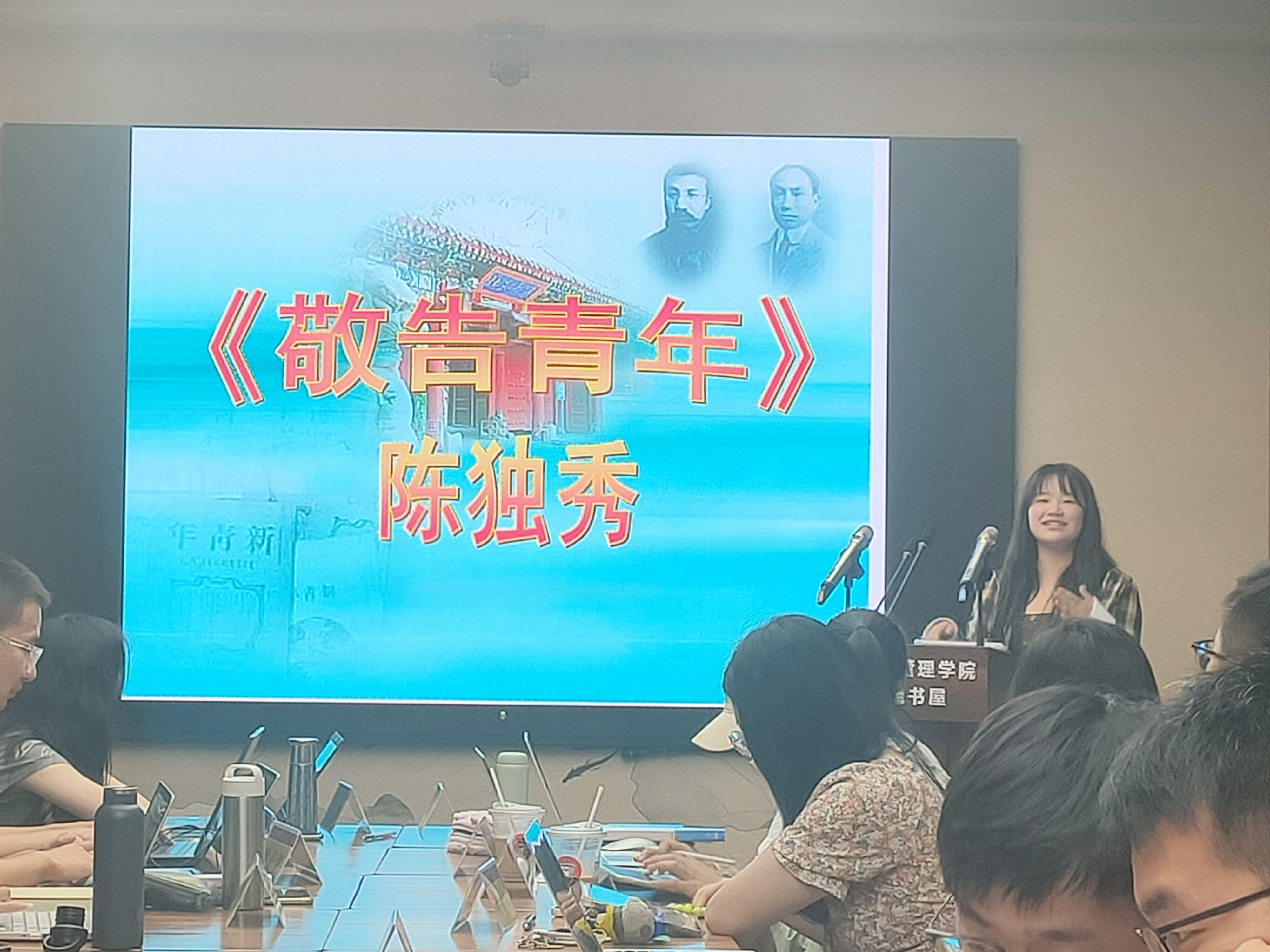 6月12日晚,8858cc永利华岗特色班第三期“本本优本”读书会于华岗苑新时代美德书屋开展。本期读书会主题为“大变局时代的青年”,阅读书目为梁启超的《新民说》和陈独秀的《敬告青年》,邀请8858cc永利庞敏老师和博士生冯亚昆担任点评嘉宾,吸引了学院各年级二十余名本科生参加活动。