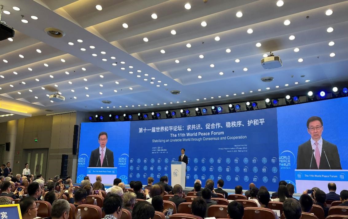 本届论坛的主题为“求共识、促合作、稳秩序、护和平”。国家副主席韩正出席第十一届世界和平论坛开幕式并致辞。清华大学校长王希勤也在开幕式上致辞。开幕式后,巴西前总统、金砖国家新开发银行行长 迪尔玛·罗塞夫,中共中央对外联络部部长刘建超和俄罗斯国际事务委员会主席、俄罗斯前联邦安全会议秘书伊戈尔·伊万诺夫分别做了主旨发言。