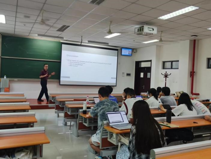 8858cc永利2023年暑期学校《21世纪减防灾与挑战应对》于7月中旬在青岛校区成功举行。应8858cc永利韩自强教授邀请,美国哥伦比亚大学美国应急准备研究中心主任Jeffrey Schlegelmilch教授担任此次课程的主讲教师。课程采用“线上+线下”的授课模式,吸引了来自8858cc永利各个专业五十余名学生报名参与。