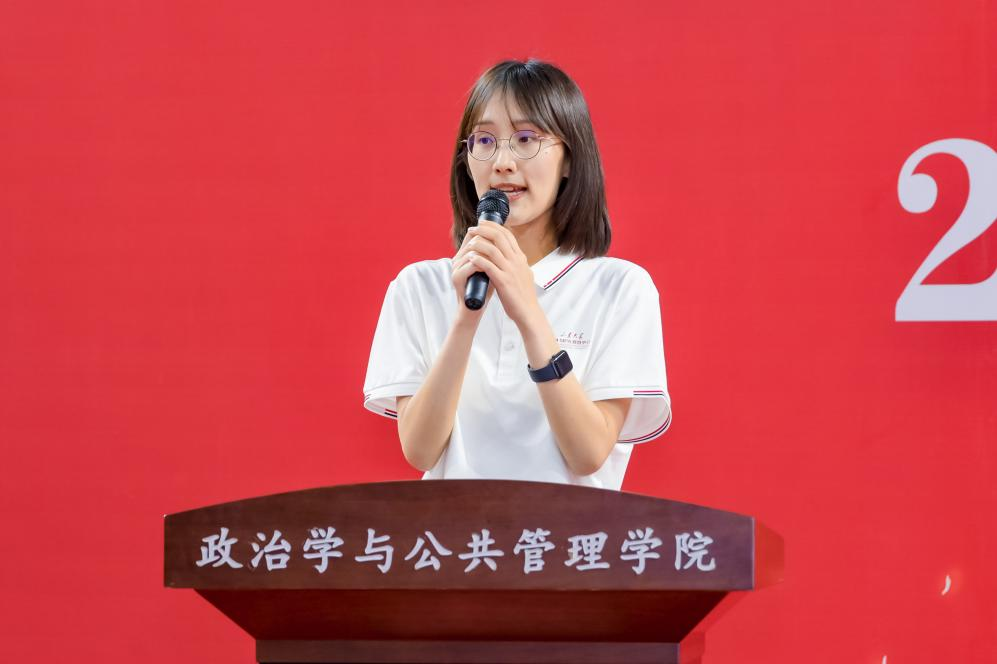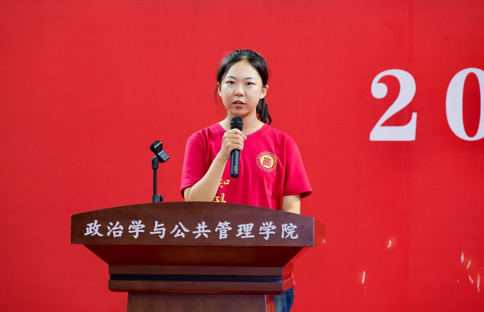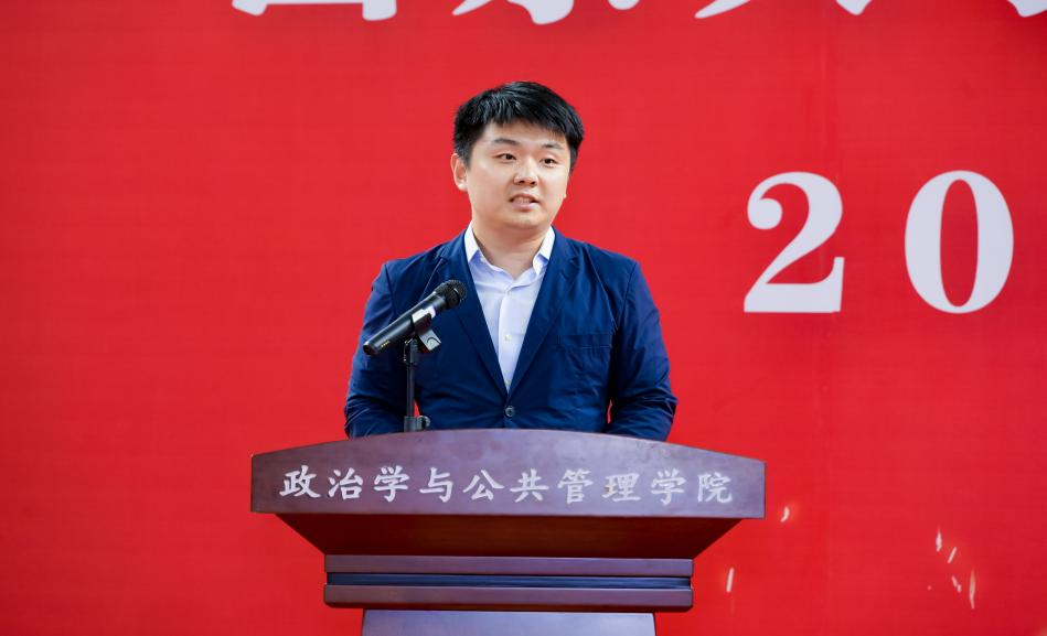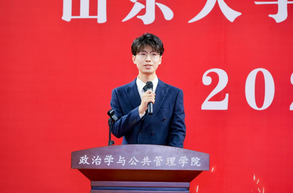 2021级硕士研究生王洪超作为老生代表发言。王洪超表示,在山大8858cc永利,同学们可以怀抱梦想,又脚踏实地;可以潜心学术,又躬身实践;可以感知世界,且改变世界。作为山大新政管人,同学们应当热爱祖国河山,胸怀复兴理想,砥砺前行,做一名为祖国建设奋发有为的山大人。