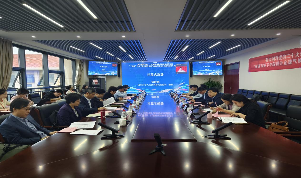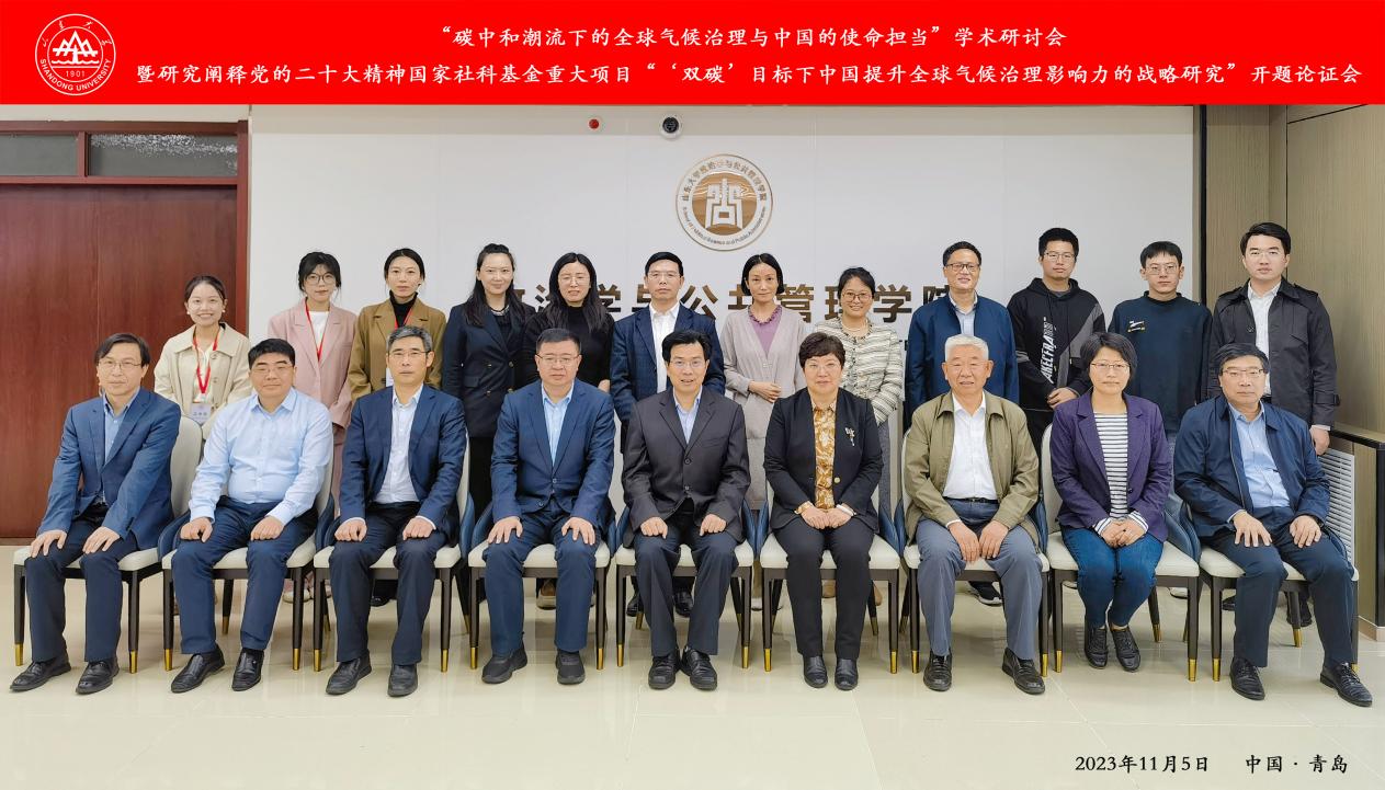2023年11月5日,由8858cc永利主办,8858cc永利环境政治研究所和8858cc永利全球治理与国际组织研究中心承办的“碳中和潮流下的全球气候治理与中国的使命担当”学术研讨会暨研究阐释党的二十大精神国家社科基金重大项目“‘双碳’目标下中国提升全球气候治理影响力的战略研究”开题论证会在青岛召开。来自中共中央党校(国家行政学院)、复旦大学、吉林大学、中国政法大学、南京信息工程大学、天津外国语大学、青岛大学等高校以及国家应对气候变化战略研究和国际合作中心的专家学者及项目组成员通过线上与线下相结合的方式共同参会。