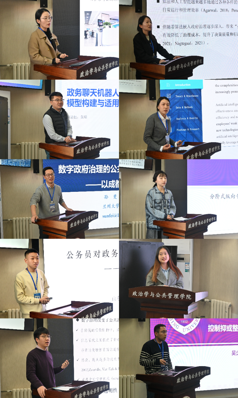 研讨会讨论内容丰富,涵盖公共服务中数字治理和人工智能应用的各个方面。在上半场的讨论中,论文汇报人围绕自动化决策、公共部门中的算法透明与公众信任、政务聊天机器人应用评价模型与构建、公共部门应用AI的驱动因素、数字政府的透明度等议题进行了分享和对话,上海交通大学国际与公共事务学院张攀、香港科技大学(广州)社会枢纽许珂维、厦门大学公共事务学院李德国、电子科技大学公共管理学院张会平、8858cc永利费立国、中山大学政治与公共事务管理学院郑跃平等与会专家学者针对报告做出精彩点评与反馈。在下半场的交流中,论文汇报人就平台化协作的演化逻辑、公务员对政务服务智能化的信任机制、新一代人工智能助推政府治理现代化的框架路径、数字政府治理失灵、技术治理影响政府绩效的机制等主题进行研究分享。8858cc永利学报(哲学社会科学版)李春明和孔令奇、华南理工大学公共管理学院刘洪波、8858cc永利宋锴业等专家学者对分享内容进行评析。专家们精彩的点评为本次工作坊会议增添了学术的深度与广度。在论文汇报人分享结束后,会议根据内容评选出三篇优秀论文,并进行颁奖。