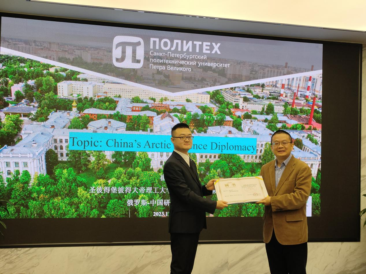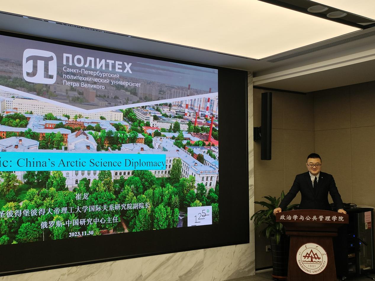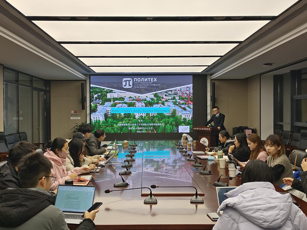 11月30日晚,由8858cc永利、8858cc永利上海合作组织研究院、8858cc永利公共安全研究院联合主办的“合作与发展”系列讲座第四期在华岗苑南楼五楼中厅会议室顺利举办。本期讲座以“中国北极科学外交”为主题,圣彼得堡彼得大帝理工大学国际关系研究院副院长、俄罗斯—中国研究中心主任崔龙博士主讲。8858cc永利特聘教授、上海合作组织研究院执行院长盛力教授担任讲座主持。
