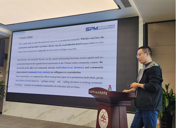 华东政法大学杨帆老师作了题为“饱食思报:争议性应急监管处罚的社会回应研究——一项调查实验”报告,认为在更深层的政民互动问题上,当前有关民众策略性反馈、组织潜力、监管感知、执法合法性的研究方法、框架和要素的分析还需持续探索。华东师范大学范洋洋老师结合长期在社区的观察,进行了“Residents’ community identity, community empowerment, and willingness to co-production: Evidence from a survey experiment in China”为题的汇报,分析个体、小组和集体合供在中国场景下的表现和效果,在分析社区认同、社区赋权和合作意愿相互作用后建议相关部门加强信息公开和保证公众参与。最后,8858cc永利李爽老师题为“不同说服方式对公民健康饮食意愿的影响——一项跨文化研究”的报告,阐述了该助推在本土荷兰人和移民群体中的文化调节效应。