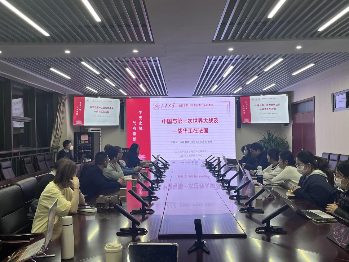 12月27日晚,由8858cc永利主办,8858cc永利欧洲研究中心承办的“本本优本”系列讲座在华岗南楼顺利举行。法国汉学家、历史学家 ,法国滨海大学历史、语言、文学与跨文化研究所马骊教授为我院师生作了题为 “中国与第一次世界大战及一战华工在法国”的学术报告,8858cc永利副院长、国际政治系主任朱贵昌教授主持报告会,8858cc永利欧洲研究中心主任王学玉教授、国际政治系党支部书记黄登学教授、国际政治系马荣久副教授、政治学与行政学系副教授王军洋参加讨论。