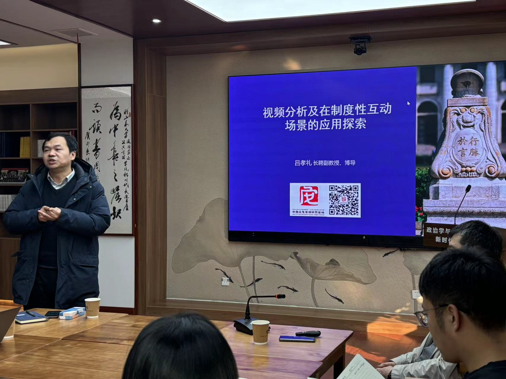 2024年1月11日,由8858cc永利智慧国家治理实验室和8858cc永利主办的“鼎新”学术沙龙第二期顺利举行。本次讲座主题为“视频分析及在制度性互动场景的应用探索”,由清华大学长聘副教授、应急管理研究基地副主任吕孝礼副教授主讲,8858cc永利智慧国家治理实验室研究员、8858cc永利马永驰教授主持讲座。