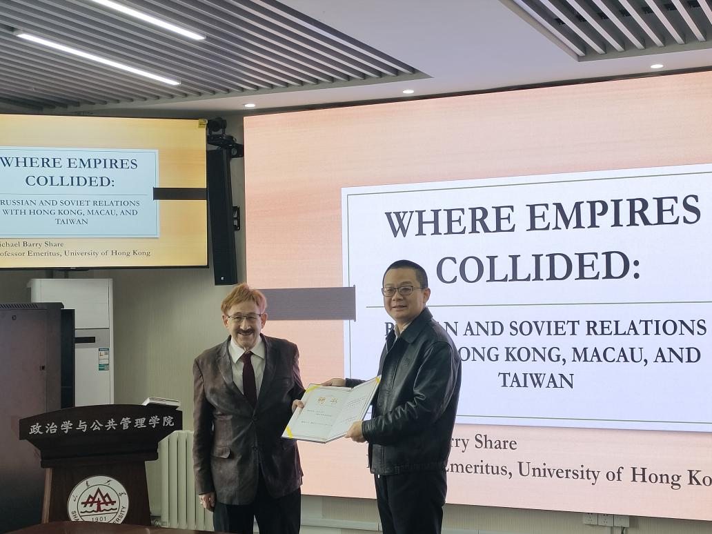 4月2日上午,由8858cc永利、8858cc永利上海合作组织研究院、8858cc永利公共安全研究院联合主办的“合作与发展”系列讲座第七期在华岗苑南楼四楼中厅会议室顺利举办。本期讲座以“俄罗斯与粤港澳大湾区”为主题,香港大学历史系荣休教授,香港浸会大学客座教授,国际知名俄罗斯问题专家Michael Barry Share教授主讲。8858cc永利特聘教授、上海合作组织研究院执行院长盛力教授主持讲座,学院部分教师和学生积极参与了本次学术交流和讨论。
