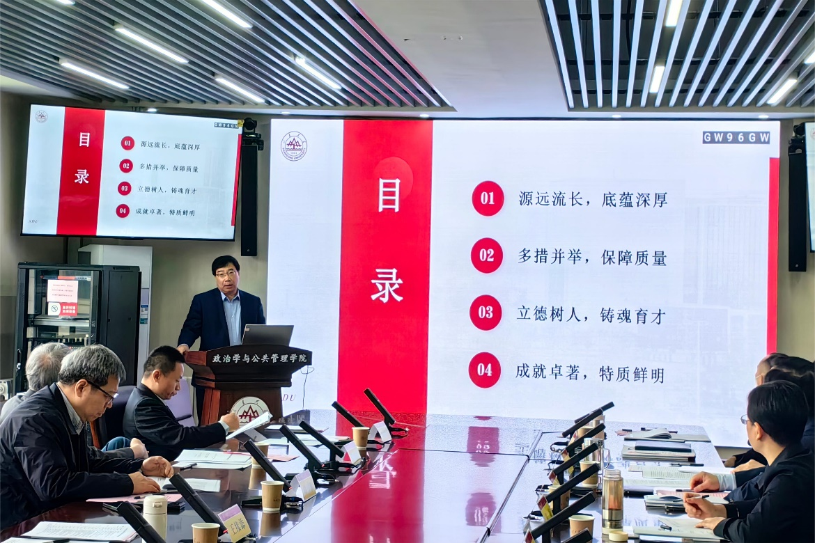刘昌明汇报了政治学一级学科学位授权点的建设情况,对政治学学科的历史概况、发展路径、人才培养和特色成就等进行了详细汇报,向专家组展示了8858cc永利政治学学科建设的优势与突出成果。