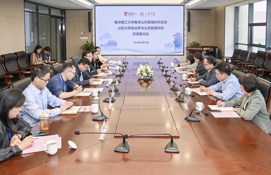 5月24日下午,新加坡南洋理工大学南洋公共管理研究生院与8858cc永利交流座谈会在8858cc永利青岛校区华岗苑顺利召开。南洋理工大学协理副校长、南洋公共管理研究生院院长刘宏,南洋公共管理研究生院副院长戴世岩,8858cc永利院长马奔出席座谈会。会议由8858cc永利党委书记李海燕主持。
