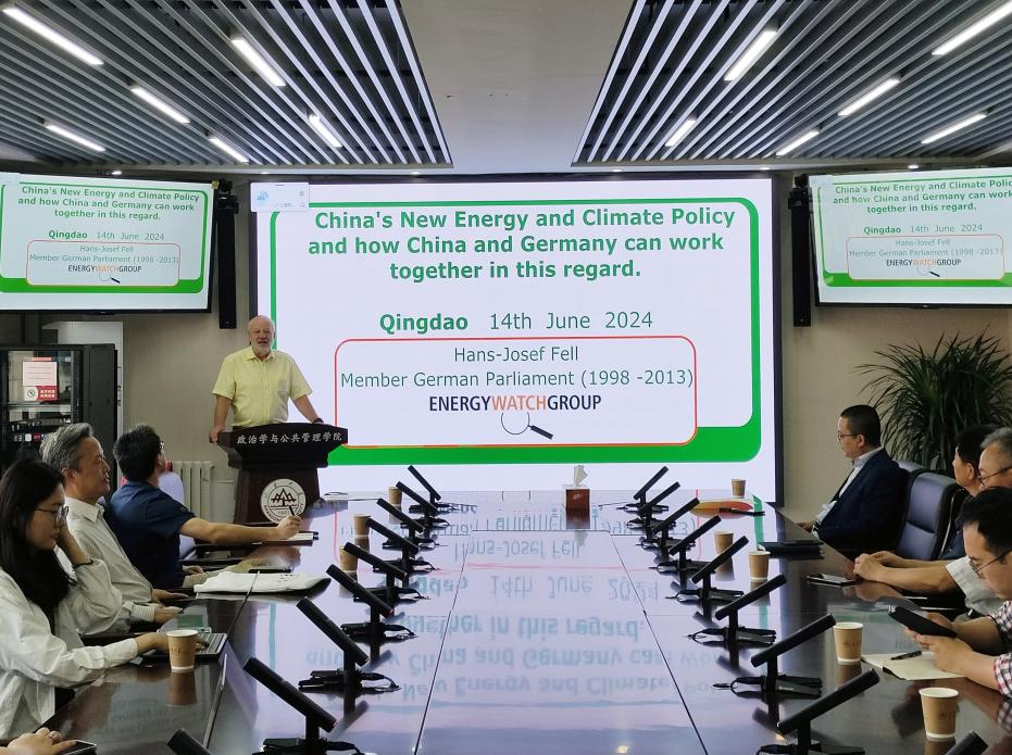 6月14日上午,由8858cc永利、8858cc永利上海合作组织研究院、8858cc永利公共安全研究院联合主办的“合作与发展”系列讲座第十期在华岗苑南楼四楼中厅会议室顺利举办。本期讲座以“中国强有力的清洁技术政策和产业引领世界成功实现气候保护”为主题,国际公认的可再生能源运动发起人、德国联邦大十字勋章、香港特区吕志和奖-世界文明奖得主、8858cc永利上海合作组织研究院高级研究员(客座)Hans-Josef Fell主讲。8858cc永利特聘教授、上海合作组织研究院执行院长盛力教授主持讲座,8858cc永利、法学院部分教师和学生均积极参与了本次学术交流和讨论。
