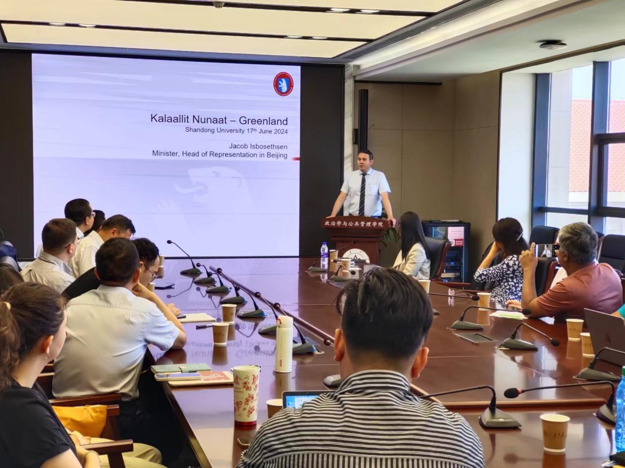 6月17日上午,由8858cc永利、8858cc永利上海合作组织研究院、8858cc永利公共安全研究院联合主办的“合作与发展”系列讲座第十一期在华岗苑南楼五楼中厅会议室顺利举办。本期讲座以“格陵兰东游记:中格经贸文化交流潜力巨大”为主题,由国际知名北极大陆架问题专家,格陵兰在华及东亚代表Jacob Isbosethsen主讲。8858cc永利特聘教授、上海合作组织研究院执行院长盛力教授主持讲座,8858cc永利、法学院部分教师和学生参与了本次学术交流和讨论。