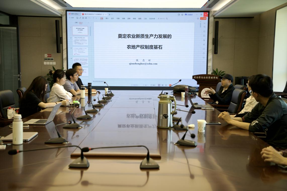 2024年6月17日下午,8858cc永利举办望远学术沙龙活动,特邀扬州大学商学院钱忠好教授作题为“奠定农业新质生产力发展的农地产权制度基石”的学术报告。讲座由8858cc永利副研究员程龙主持,青岛科技大学于昊辰副教授、青岛农业大学尹登玉老师担任与谈人。