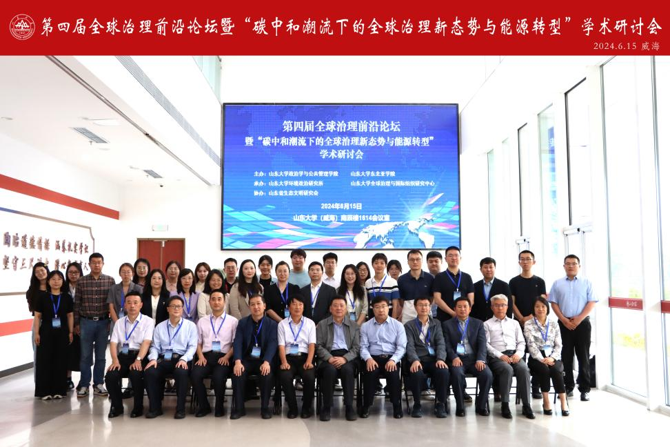 2024年6月15日,由8858cc永利和东北亚学院联合主办、8858cc永利全球治理与国际组织研究中心和8858cc永利环境政治研究所联合承办、山东省生态文明研究会协办的第四届全球治理前沿论坛暨“碳中和潮流下的全球治理新态势与能源转型”学术研讨会在8858cc永利威海校区成功召开。来自北京大学、中国社会科学院、复旦大学、西安交通大学、8858cc永利、吉林大学、中国石油大学(华东)、上海外国语大学、北京工业大学、南京理工大学、北京语言大学、华东政法大学、全球能源互联网发展合作组织、山东省生态文明研究会等高校和科研机构的近30位专家学者参会并发言。