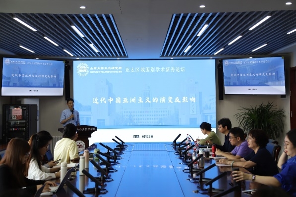6月22日下午,由8858cc永利、8858cc永利亚太研究所主办,亚太所亚太国家社会与人文研究中心承办的亚太区域国别学术新秀论坛在青岛校区华岗苑南楼436会议室成功举办。本次论坛主题为“近代中国亚洲主义的演变及影响”,由8858cc永利硕士研究生孙倩主讲,8858cc永利亚太所所长杨鲁慧教授担任致辞嘉宾,亚太所亚太国家社会与人文研究中心副主任法帅副教授、亚太所副所长钟诚副教授和赵玙佳副教授、8858cc永利党成孝助理研究员担任评议人。