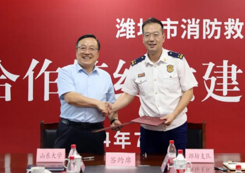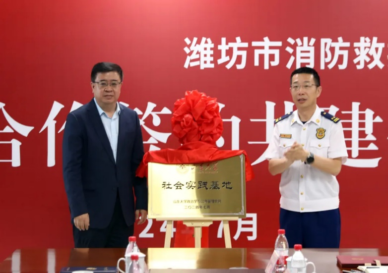 5日下午,学院调研团赴潍坊市消防救援支队座谈交流,并举行共建学生社会实践基地签约揭牌仪式。学院院长马奔与潍坊市消防救援支队政委王刚分别致辞,并为“学生社会实践基地”揭牌;学院党委书记李海燕与潍坊市消防救援支队支队长邵帅共同签署了战略合作框架协议。