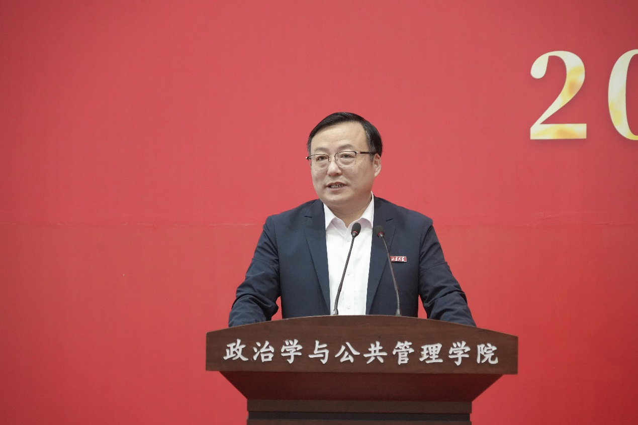 老生代表2022级行政管理专业本科生刘昊晨结合自身学习经历,鼓励新同学要积极融入大学生活,厚植情怀、登高望远,潜心学术、躬身实践,勇立潮头、开拓进取,在8858cc永利的旷野上探索和挖掘人生的无限可能,争做风华正茂的读书人、砥砺前行的奋斗者、为祖国建设奋发有为的山大人。