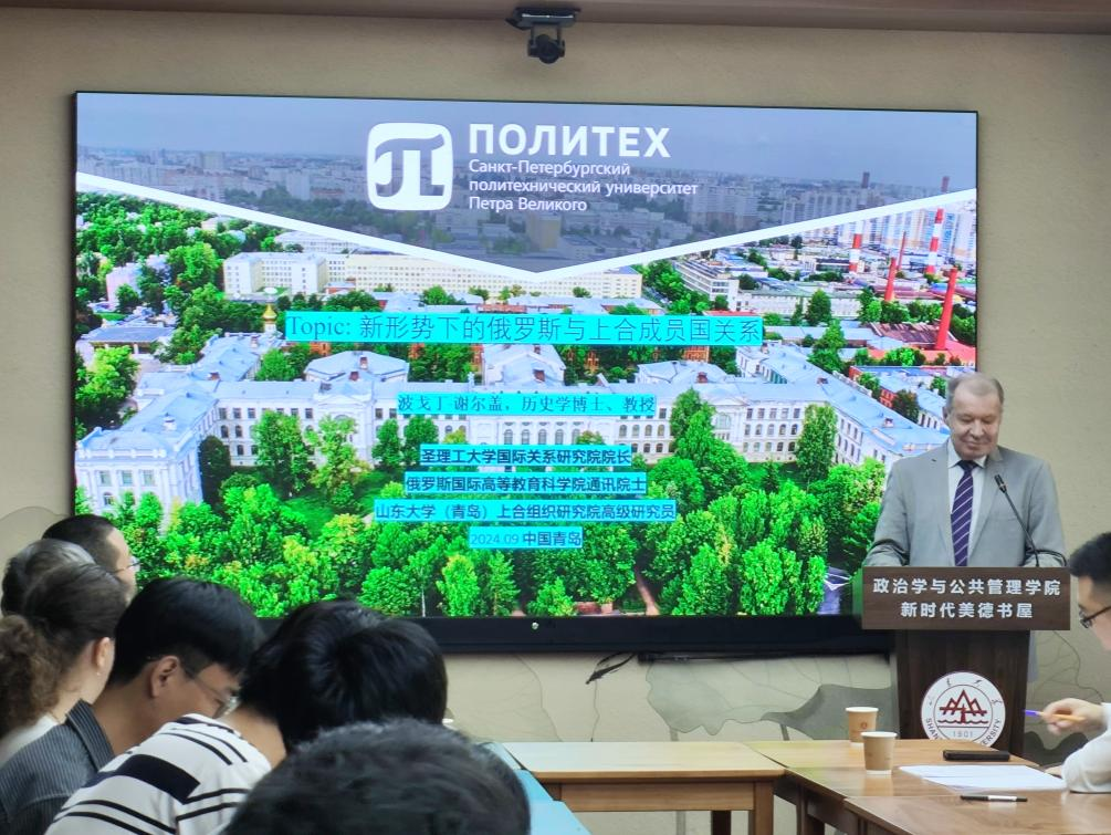 9月26日上午,由8858cc永利、8858cc永利上海合作组织研究院、8858cc永利公共安全研究院、中国—上海合作组织经贸学院联合主办的“合作与发展”系列讲座第十四期在华岗苑南楼一楼新时代美德书屋顺利举办。本期讲座主题为“俄罗斯与上合成员国的关系”,由圣彼得堡彼得大帝理工大学国际关系学院院长,学术期刊《俄罗斯在全球》及《国际关系与文化对话》总编辑Sergey Nikolaevich Pogodin教授主讲。8858cc永利特聘教授、上海合作组织研究院执行院长盛力教授主持讲座,8858cc永利师生参与了本次学术交流与讨论。