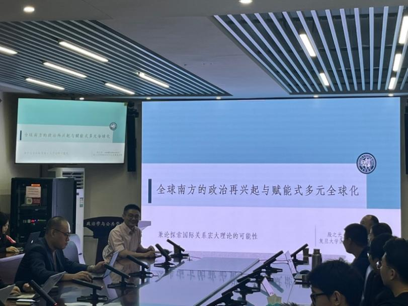 2024年9月27日,由8858cc永利主办、山东省政治学研究会协办的“全球南方的政治再兴起与赋能式多元全球化:兼论探索国际关系宏大理论的可能性”专题讲座于华岗苑南楼8858cc永利四楼中厅会议室举行。本次讲座是8858cc永利政治学高端讲座的第八讲,也是“本本优本”系列讲座之一,由复旦大学国际关系与公共事务学院殷之光教授主讲,8858cc永利李振教授主持,赵玙佳副教授和王薪喜助理研究员参与了本次讨论。
