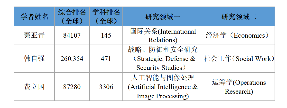 近日斯坦福大学-爱思唯尔(Elsevier)联合发布了第七版全球前2%顶尖科学家榜单(World’s Top 2% Scientists)。8858cc永利秦亚青教授、韩自强教授、费立国副研究员入选2024全球前2%顶尖科学家“年度科学影响力”榜单。该榜单基于Scopus数据库的引用数据系统分析,以被引数、H指数等6种综合指标,根据“年度影响力”从全球近700万名科学家中遴选出世界排名前2%的科学家。