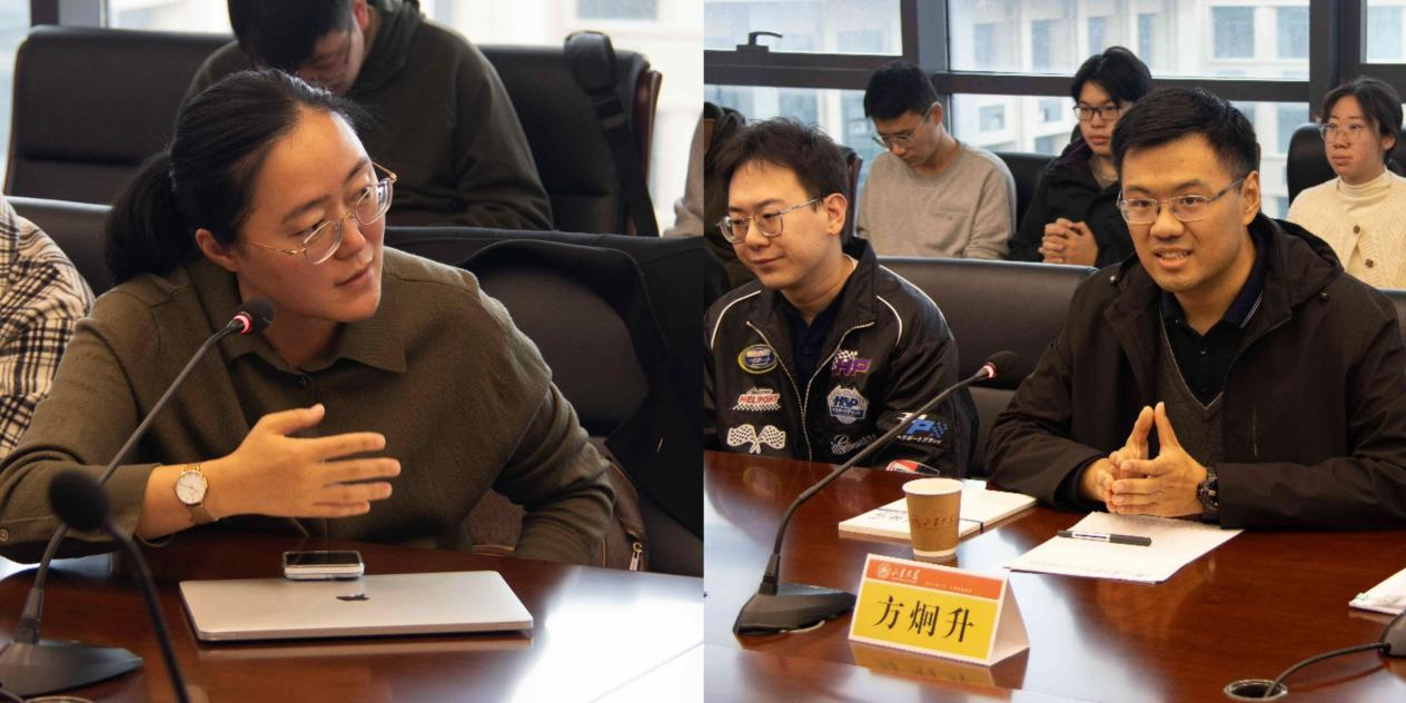 随后,现场师生踊跃与两位特邀嘉宾开展交流。赵玙佳老师和李慧明老师围绕学者在研究领域与研究方法上的选择与两位特邀嘉宾进行对话。李昕蕾老师、黄栋老师、展妍男老师以及学院多位博士、硕士同学则就具体论文选题与两位特邀嘉宾商榷。最后,方炯升老师对上半场活动进行总结,期待在场的青年学子按照两位特邀嘉宾的建议,在厚植理论基础的同时,洞察学术前沿,写出高水平学术论文。
