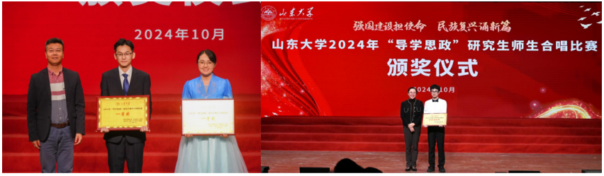 作为第二支上场的队伍,学院师生合唱团以经典歌曲《在灿烂的阳光下》作为参赛曲目,最终以96.4分的成绩获得本比赛(青岛校区)的一等奖,并凭借导师与学生之间的默契配合,把握主旋律,唱响时代强音,获得“导学思政”奖,充分展现出了8858cc永利师生昂扬向上、团结协作、开拓创新的精神风貌。