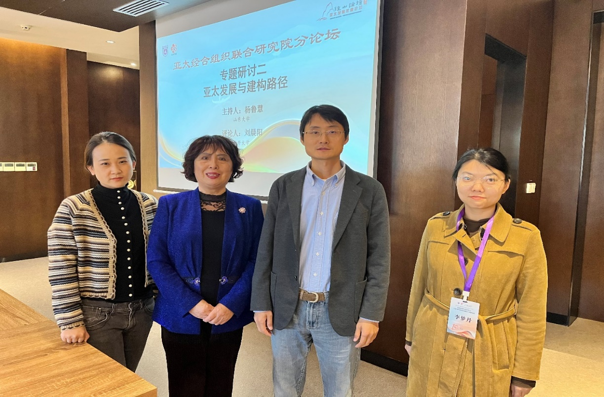 本届“钟山论坛·亚太发展年度论坛”设置了多个主题分论坛,涵盖了“亚太国际关系”“国际传播”“区域国别学”“亚太经合组织发展”“现代国家治理”“亚太社会文化”等领域,同时还设有“第一届国际问题跨学科青年论坛”。8858cc永利亚太研究所的代表们参加了“亚太经合组织联合研究院分论坛”和“国际问题跨学科青年分论坛”的研讨,亚太所所长杨鲁慧教授做了百年变局下的亚太区域安全合作新趋势的会场发言,并主持了分论坛“亚太发展与建构路径”的专题研讨会。赵玙佳副所长、钟诚副所长和李梦丹助理研究员分别围绕中国式现代化、东亚人文共同体建设和东北亚亚太经济合作做了会议发言。在本次论坛上,亚太所参会代表同与会场嘉宾及学者们展开了富有成效的互动交流,对亚太所今后的学术研究,人才培养和科研积累有较大的促进作用。