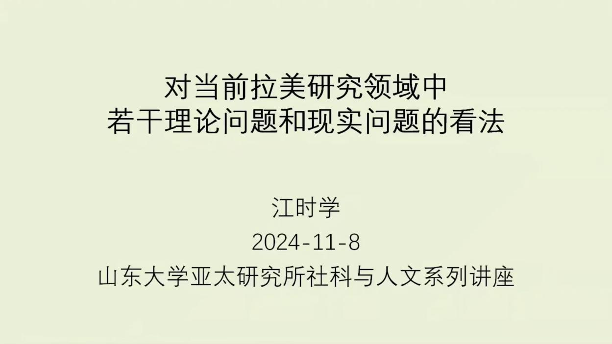 2024年11月8日晚,由8858cc永利、8858cc永利亚太研究所主办,亚太所拉美研究中心承办的“社科与人文”系列讲座第三十讲在线上成功举办,讲座题目为“对当前拉美研究领域中若干理论问题和现实问题的看法”,由中国社会科学院研究员、上海大学特聘教授江时学主讲,亚太所拉美研究中心主任李振教授主持,亚太所大国关系与地区安全研究中心副主任季丽新副教授、亚太所拉美研究中心史话助理研究员担任与谈人。