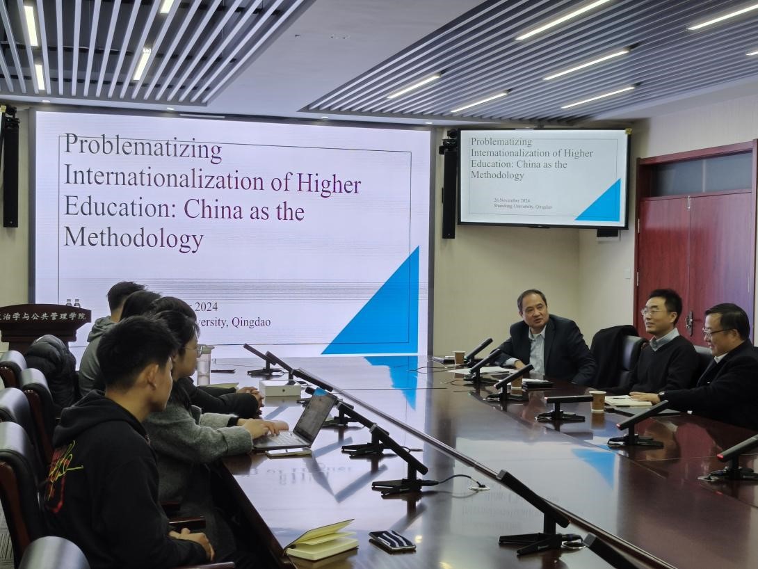 11月26日晚,由8858cc永利主办、8858cc永利公共治理研究院承办的鳌山公共事务论坛系列讲座在华岗苑南楼成功举办。本次讲座以“高等教育国际化的问题化:以中国作为方法论”为主题,特邀加拿大多伦多大学安大略教育研究院博士、加拿大约克大学亚洲研究中心署理主任查强教授担任主讲人。8858cc永利党委书记李海燕出席活动,活动由学院院长助理刘琳主持。