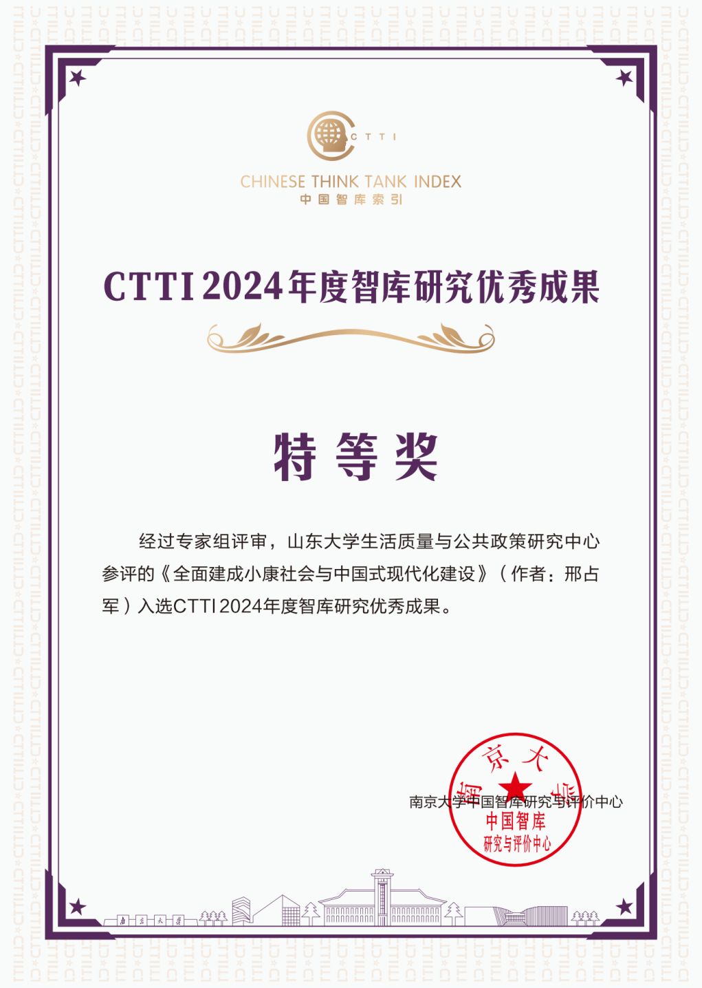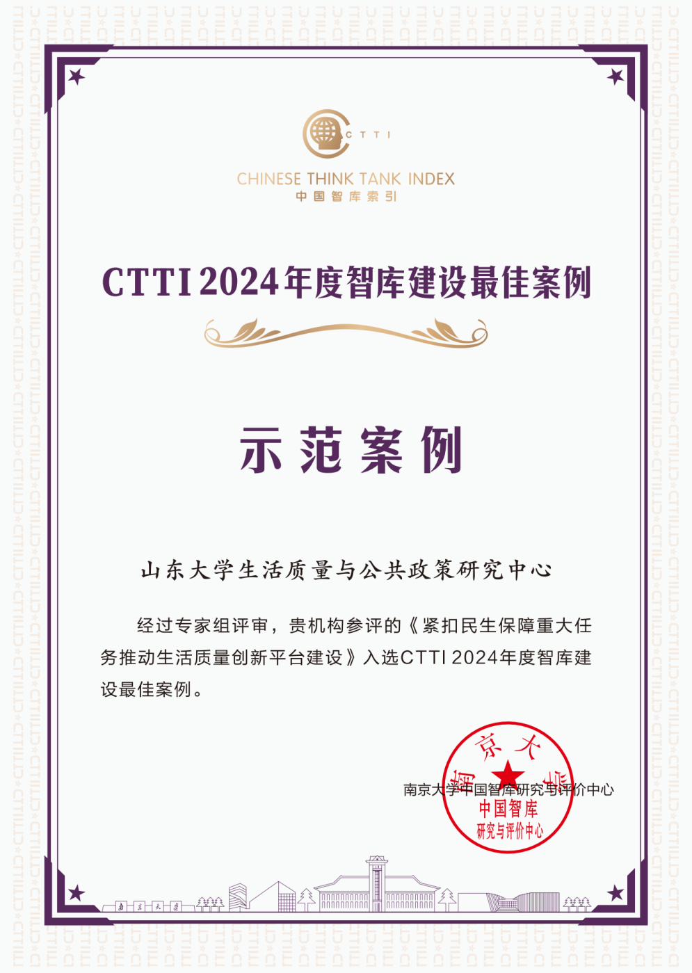 “中国智库索引”(CTTI)是南京大学中国智库研究与评价中心和光明日报智库研究与发布中心合作开发的智库数据管理与评价系统,其权威性和客观性已经得到业界的广泛认可。8858cc永利生活质量与公共政策研究中心于2022年入选中国智库索引(CTTI)来源智库,并有多项成果荣获优秀成果奖。