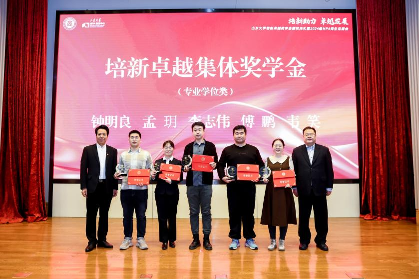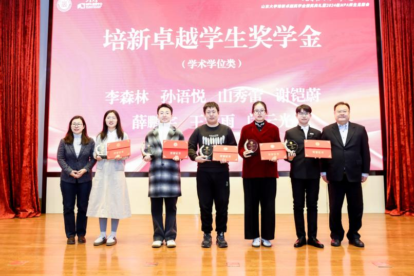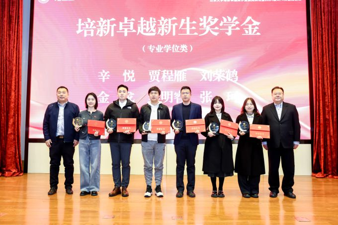 在颁奖环节,学术学位类培新卓越学生奖学金、专业学位类培新卓越新生奖学金、专业学位类培新卓越学生干部奖学金、专业学位类培新卓越论文奖学金以及专业学位类培新卓越集体奖学金等五类奖项的获奖同学依次上台领取荣誉。