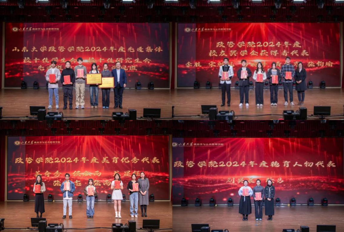 晚会还对8858cc永利2024年度人物进行了表彰,学院领导依次为8858cc永利2024年度德育人物代表、学术创新人物代表、体育人物代表、美育优秀代表、劳育优秀代表、校友奖学金获得者、先进班集体的获奖代表颁奖,激励政管学子在新的一年踔厉奋发、勇毅前行。
