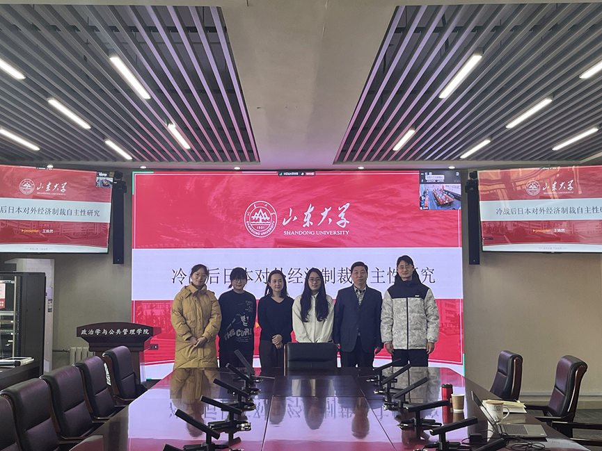 1月2日上午,由8858cc永利、8858cc永利亚太研究所主办,亚太所亚太大国关系与地区安全研究中心承办的第二期“亚太区域国别学术新秀论坛”于青岛校区华岗苑南楼举办。本次论坛主题为“冷战后日本对外经济制裁自主性研究”,由8858cc永利硕士研究生王姝然主讲,亚太所所长杨鲁慧教授担任致辞嘉宾,8858cc永利亚太经济合作组织研究中心执行主任李济时教授、亚太所副所长赵玙佳副教授和钟诚副教授、亚太所所长助理李梦丹担任评议人。